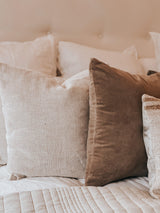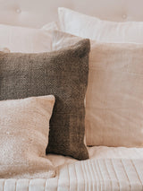 The pillow shams are handmade in Turkey of 100% Hemp Linen. The back of the pillows are cotton.