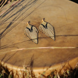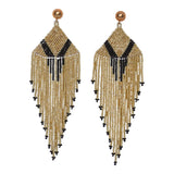 Gold/Silver plated earrings, composed of an assembly of gold and black colored beads woven by hand.
