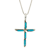 This Anna Maria Silver Necklace has Turquoise Stones delicately embedded in the Sterling Silver cross and will add a Navajo touch to every outfit.