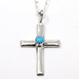 This necklace has a tiny Turquoise Stone delicately embedded in the Sterling Silver cross and will add a Navajo touch to every outfit.