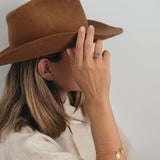 Our adjustable Faithful Turquoise Ring is composed of a base of 22k vermeil gold combined with a precious raw Kingman Turquoise Stone embedded in the gold base.
