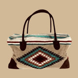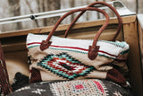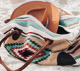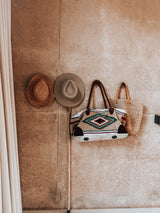 Our Boho Weekender Bag is a textured bag that reminds us of adventurous gyspy style travels around the globe. It is the perfect lightweight boho bag and will hold all of your essentials. The fabric is super sturdy and can be easily washed at home. The silver zip opens up to black lining with an inner pocket for some smaller special items. It has a Good Tidings logo on the inside. You will grab this Boho Weekender Bag on your travels, all of the time!