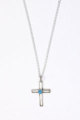 This necklace has a tiny Turquoise Stone delicately embedded in the Sterling Silver cross and will add a Navajo touch to every outfit.