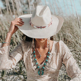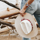 Handwoven Brisa-Weave Panama straw is crafted into a classic cowboy hat that sports a 4” cattleman’s pinch and a curled 4” brim.