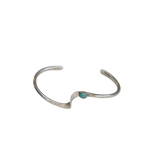 Turquoise Spirit Cuff crafted by artisans in Albuquerque, New Mexico. This adjustable cuff features a round, authentic turquoise stone set in sterling silver.